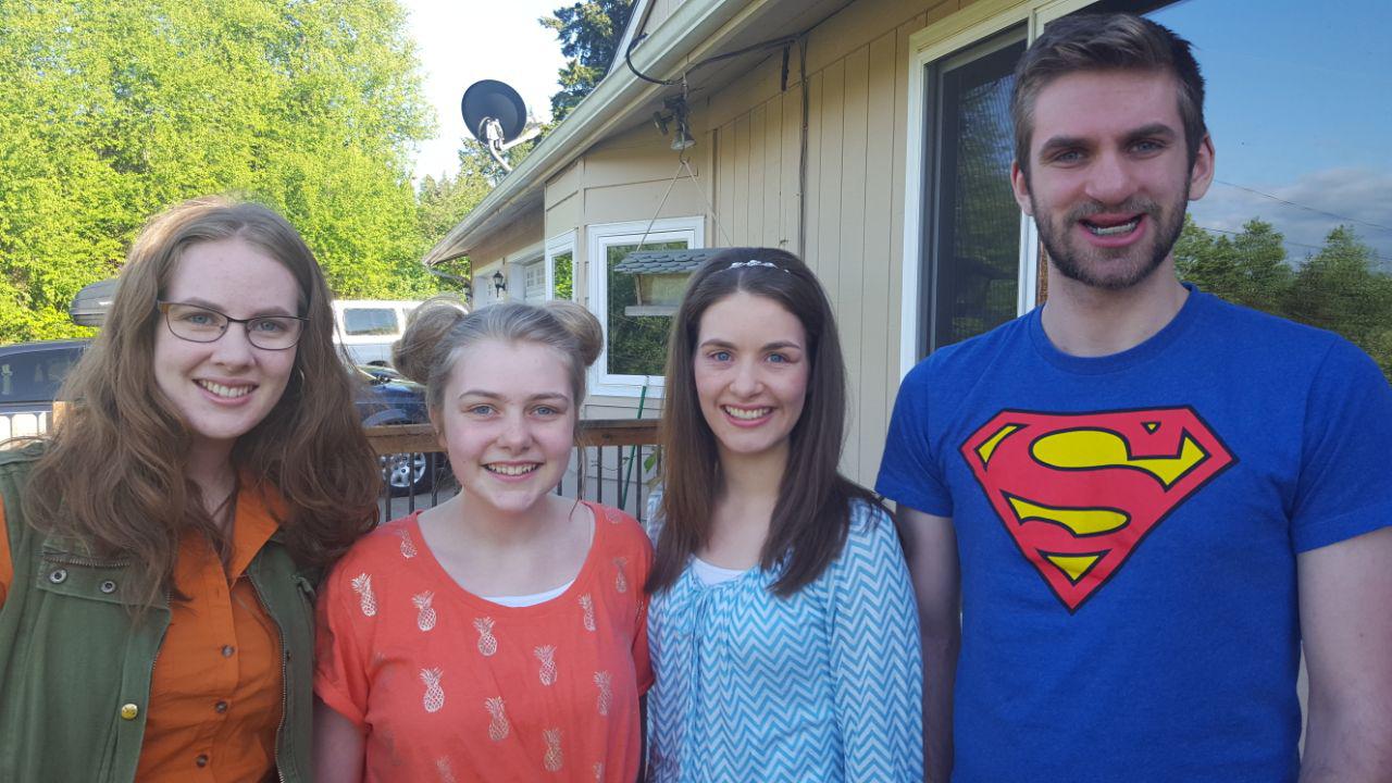 | Us siblings trying to take a cute Valentine's Day pic. Needless to say, it was VERY sunny! =D |